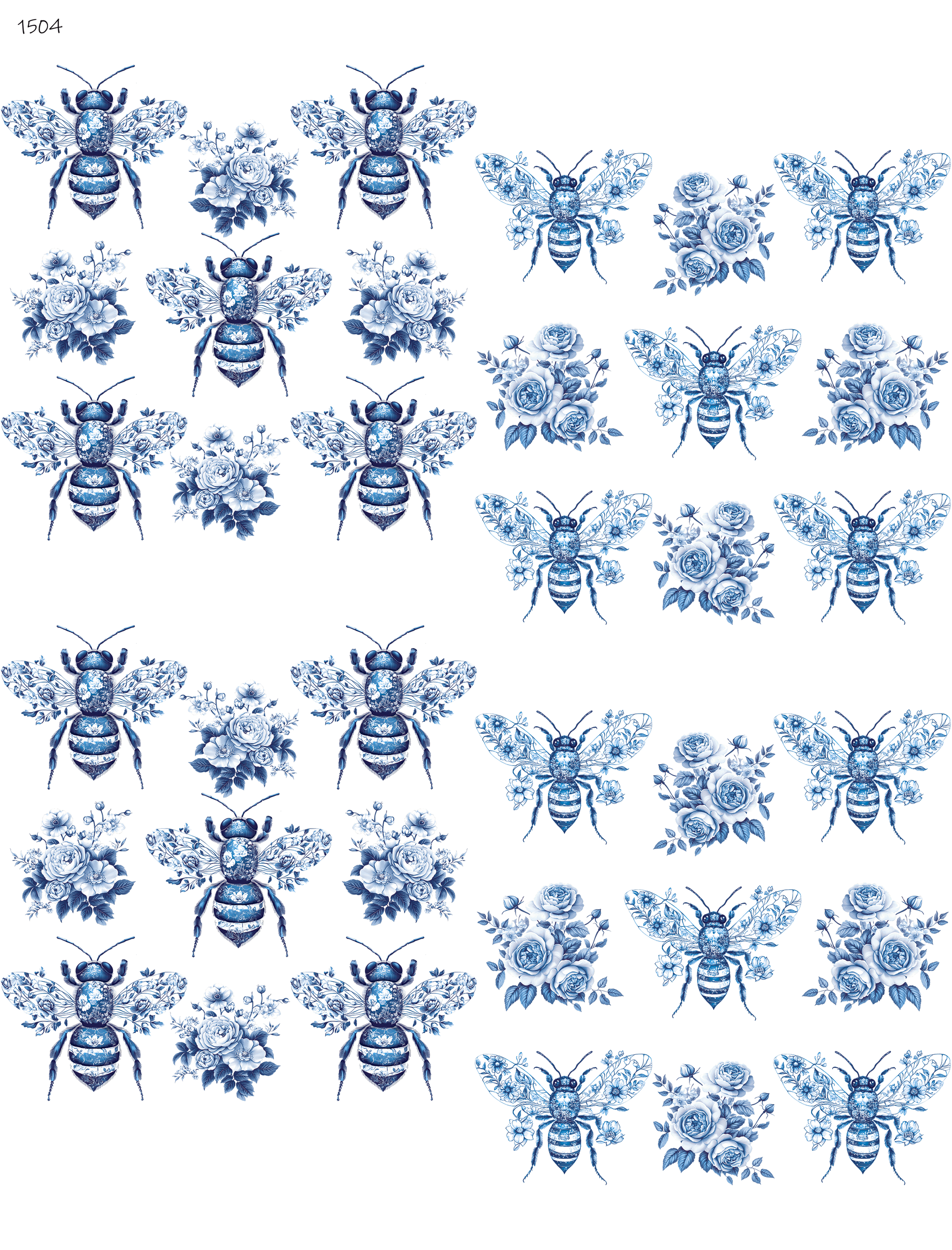 Individual decal elements typically ranging from 1 to 3 inches in size, though they can be bigger or smaller. For the most vibrant results, we highly recommend applying these decals to light-colored glazes. The color white does not print, it will take on the color of the underlying glaze. Please exercise caution with darker glazes, as results can be unpredictable; testing beforehand is highly recommended. The print area is approximately 8 x 10.5 inches on the decal sheets